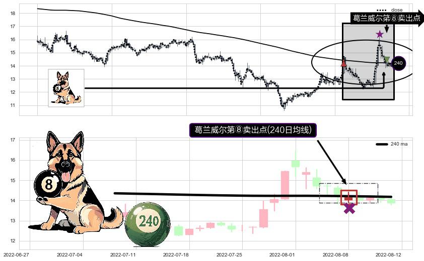 ⚀ 2022-08-08-日显现 葛兰威尔均线 240日均线 第⑧卖出点 下降趋势的中继信号,后市看跌,卖出信号