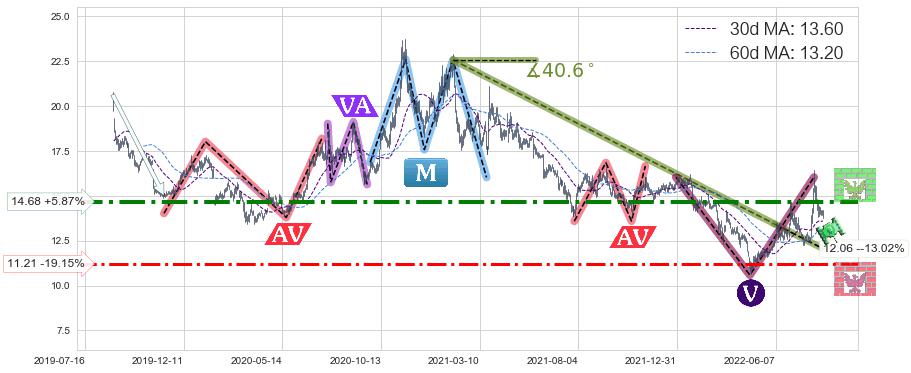 ➣ 【已达成】最小【整理】第一目标价格→(2022-04-22: 11.76 ), 后续继续【整理】下跌动力依然存在,下跌空间适中