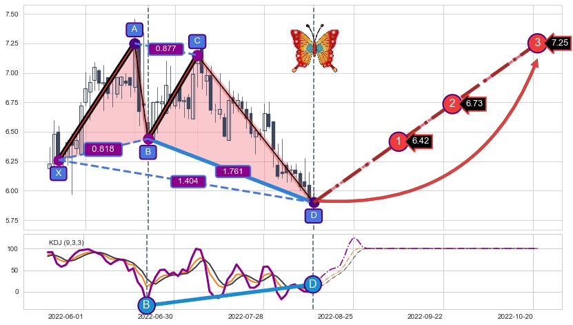 ➣ 已完成【蝴蝶】形态起点X: 2022-05-24, 终点D: 2022-08-12, 共58交易日