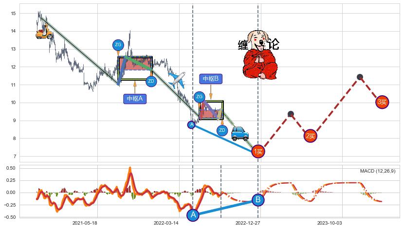 ➣ 【未完成】缠论 起点:2020-10-23, 完成第1中枢A,完成第2中枢B,到达2022-08-12
