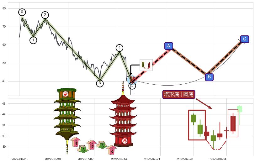 | 4 🅚:上涨两颗星 | 上涨三颗星 ➕ 🌊:波浪理论猜想下跌浪5已形成,猜想后续形成abc反弹上涨(均值回复) ☞ 看多信号 ⇥ 【🅚线】交织【图形】⇥ 综合量化分数: 51 | > |