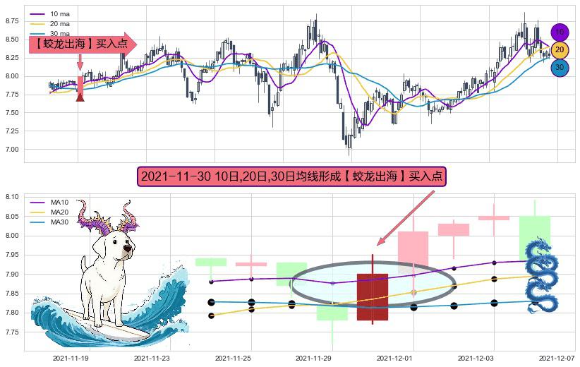 ⚀ 2021-11-30日显现 10日-20日-30日均线 【蛟龙出海】买入点 看多信号,后市看涨,买入