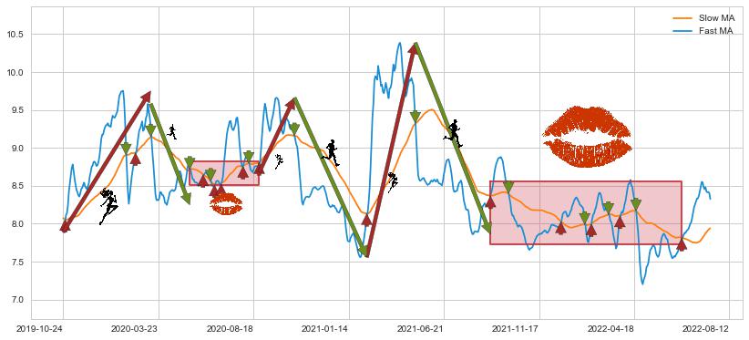 2021-08-27至2022-07-01 慢线与快线多次接触,存在上下穿越,有缠绕