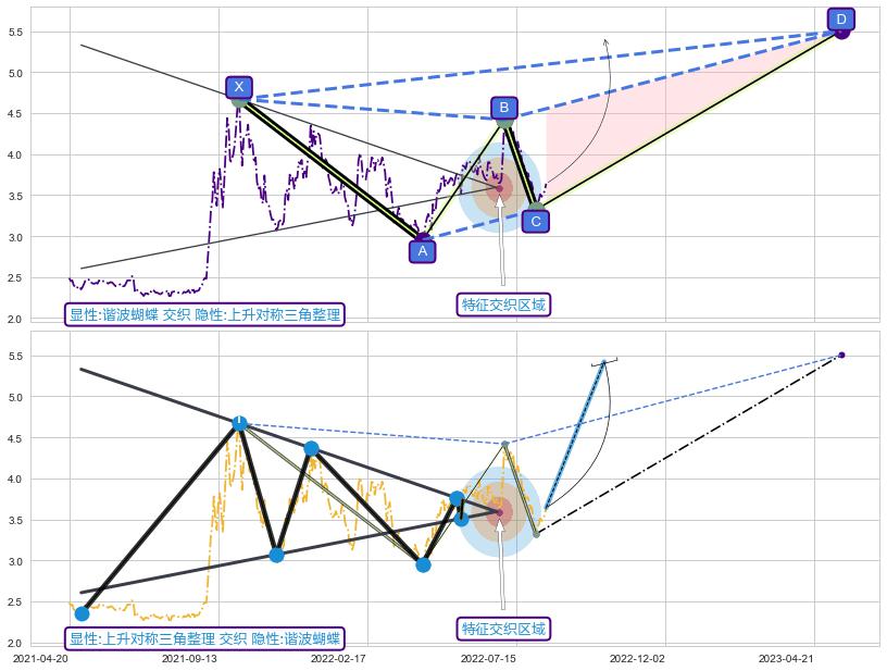 ➣ 未完成【蝴蝶】形态起点X: 2021-10-12, 已到达C点: 2022-08-03, 预测最终D点: 2023-05-17, 共405交易日