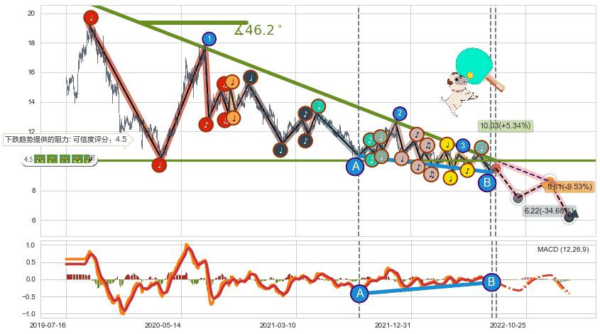 ➣ 预测:2022-12-22,【试探阻力】稳定目前下跌趋势的前提下,预测价格:8.61