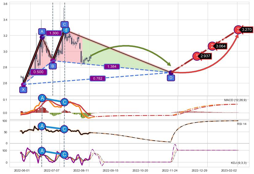 ➣ AI预测: 假定反转启动后, 第❸目标位置(2023-02-03, 3.270)