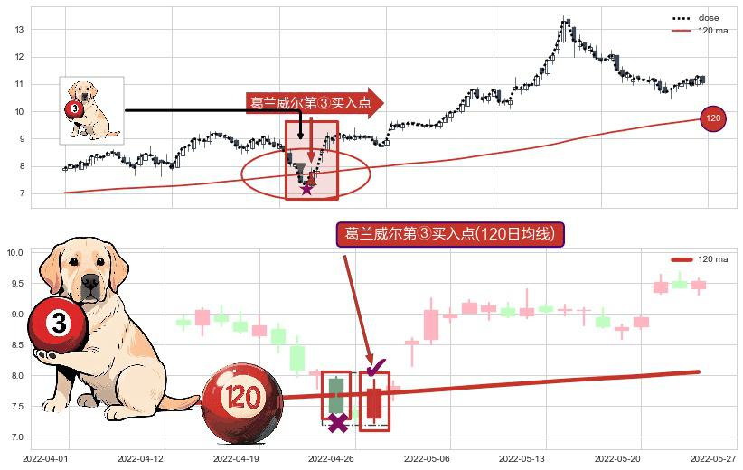 ⚀ 2022-04-27-日显现 葛兰威尔均线 120日均线 第③买入点 上升趋势的中继信号,后市看涨,买进信号