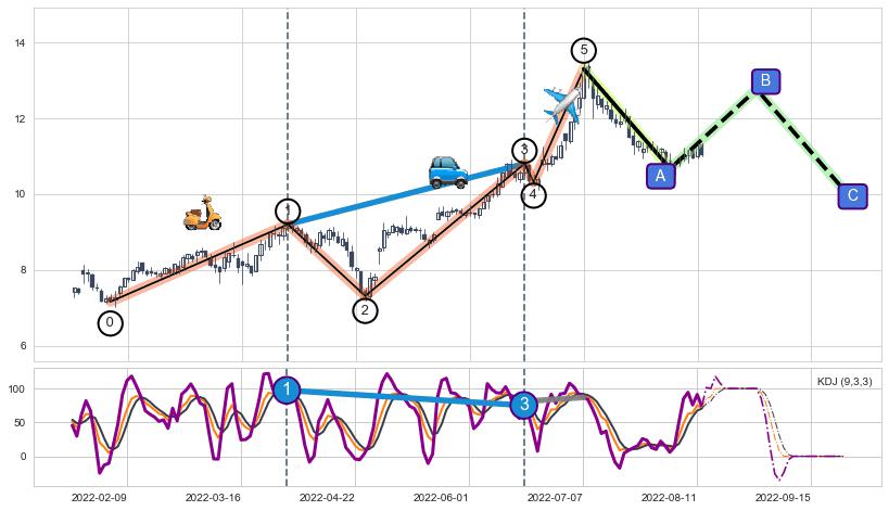 ➣ 第三驱动浪【动能】:🚙 22.73%, 是3个上涨浪中【中等】动能