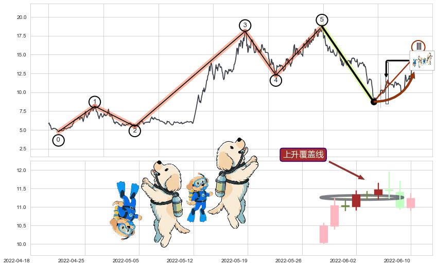 | 12 🅚:早晨之星(黎明之星) ➕ 🌊:波浪理论上涨5浪延续:猜想C点强支撑小回调终止,猜想保持上涨5浪方向拉升(均值回复后大周期继续趋势跟踪) ☞ 看多信号 ⇥ 【🅚线】交织【图形】⇥ 综合量化分数: 55 | > |
