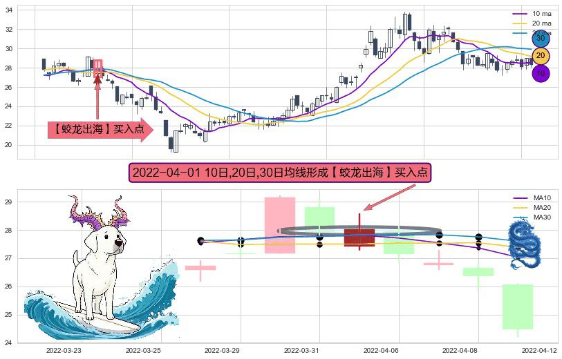 ⚀ 2022-04-01日显现 10日-20日-30日均线 【蛟龙出海】买入点 看多信号,后市看涨,买入