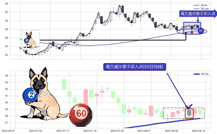 ⚀ 2022-08-10-日显现 葛兰威尔均线 60日均线 第②买入点 上升趋势的中继信号,后市看涨,买进信号