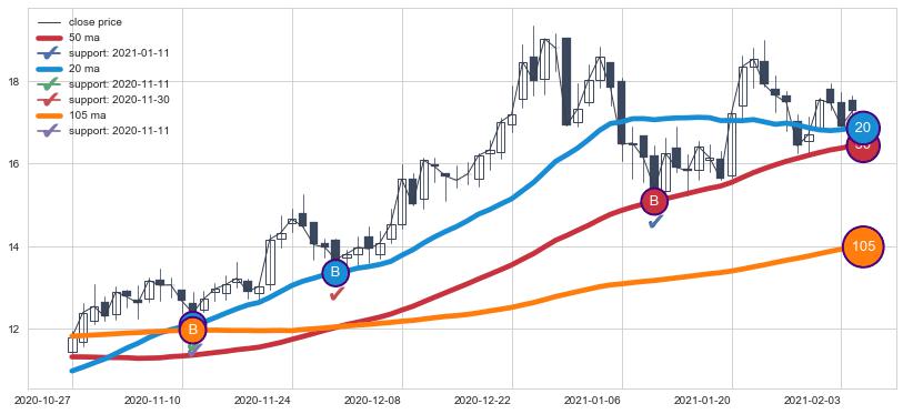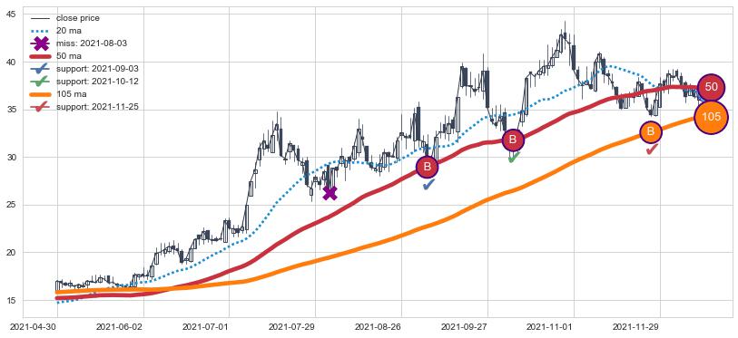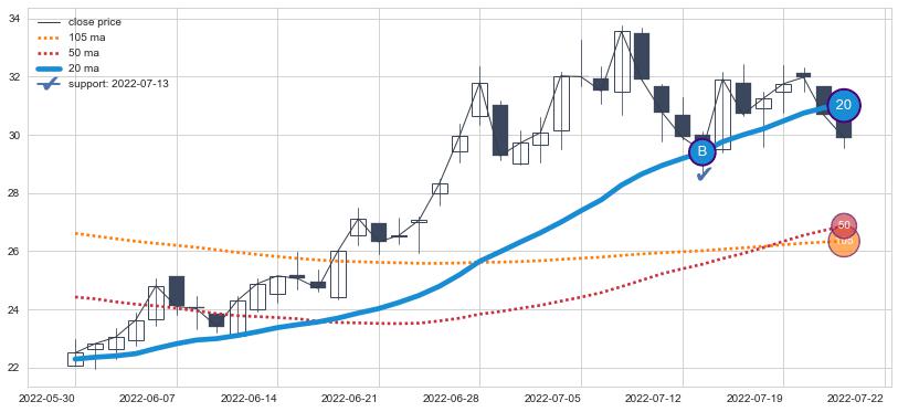 ⚄ 价格在均线获取支撑后再次向上反弹了【极短】距离, 第②买入点 支撑效果【等待验证】