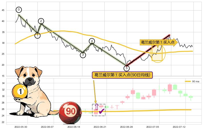 ➢ 低点影线(2022-06-21: 25.90 )→回踩→第二根k线低点(2022-06-20: 26.21 )