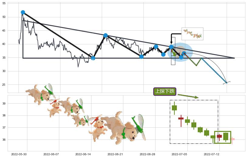 | 2 🅚:绵绵阴跌|下跌不止 ➕ 📐:下降三角整理猜想突破点临近,临近关键支撑位,预期下沉突破下跌 ☞ 看空信号 ⇥ 【🅚线】交织【图形】⇥ 综合量化分数: 44 | > |