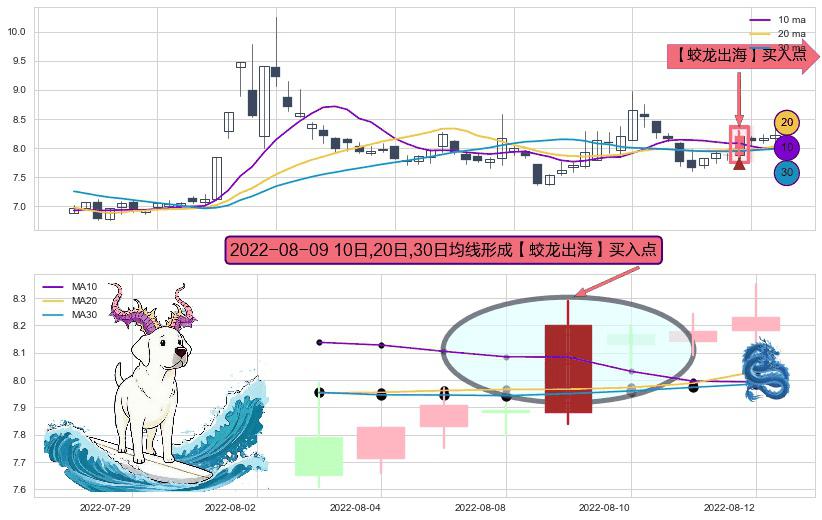 ⚀ 2022-08-09日显现 10日-20日-30日均线 【蛟龙出海】买入点 看多信号,后市看涨,买入