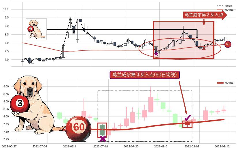 ⚀ 2022-08-04-日显现 葛兰威尔均线 60日均线 第③买入点 上升趋势的中继信号,后市看涨,买进信号