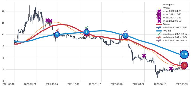 ⚂ 2022-07-15-日均线向下破位,2022-08-04-日重新上穿突破均线,均线支撑再次生效