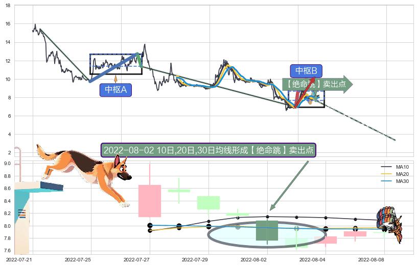➣ 【中枢B】:2022-05-30-2022-08-03,中枢由5笔构成,共47交易日, ZG=8.65, ZD=7.65