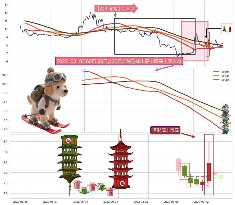 | 3 🅚:早晨之星(黎明之星) ➕ 🎢:【高山滑雪】买入点均线组合买入点信号形成后,猜想后续下行结束,持续反弹上涨(均值回复) ☞ 看多信号 ⇥ 【均线】交织【🅚线】⇥ 综合量化分数: 56 | > |