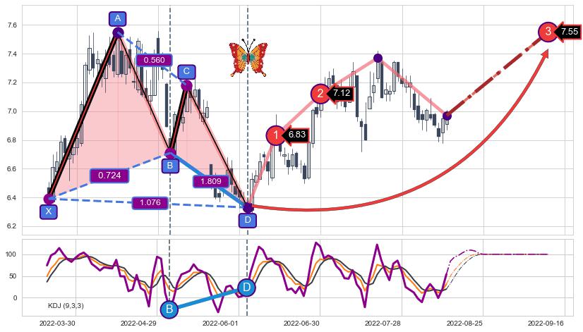 ➣ 已完成【蝴蝶】形态起点X: 2022-03-21, 终点D: 2022-06-06, 共50交易日