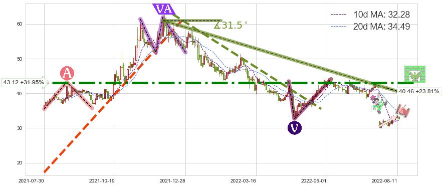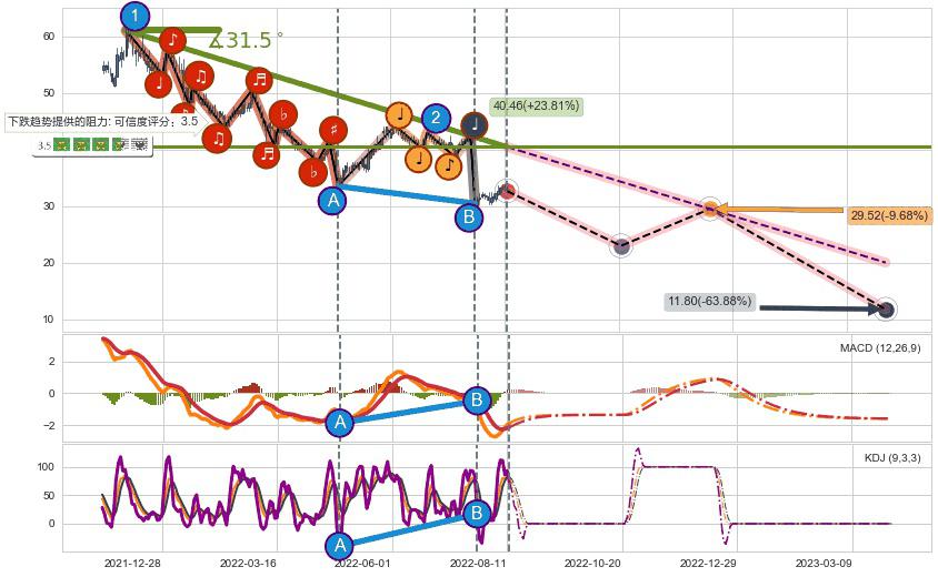 ♘ 阻力价格位43.12,可信任强度94.24%,距离最后交易2022-08-12形成的收盘价格32.68相差 +31.95%
