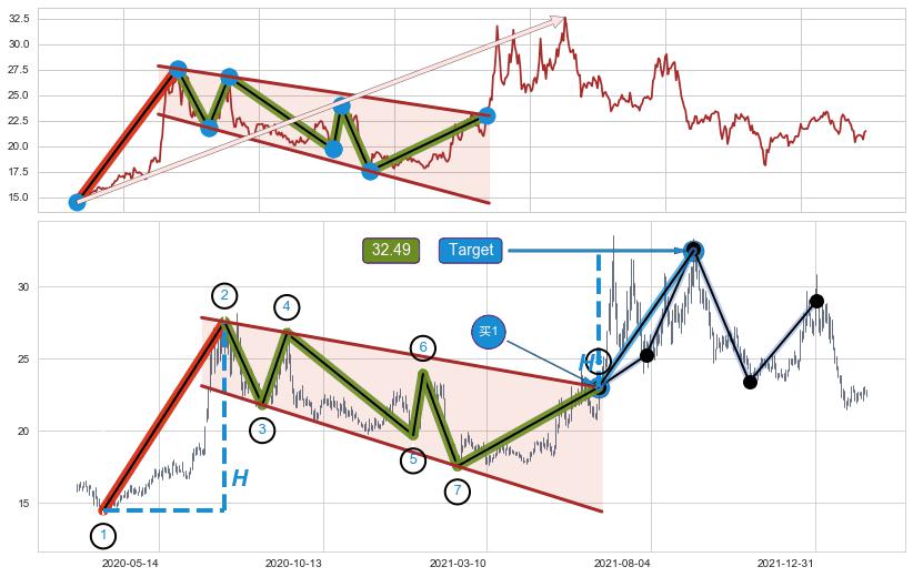 ➣ 最小中继整理涨幅→𝐇: 13.09 (𝐇旗杆的长度:旗杆起点→顶点)