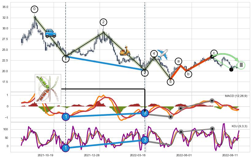 ➢ a,c调整浪MACD, RSI, KDJ走势都【未出现】背离,abc走势延续, 5浪反转概率增强