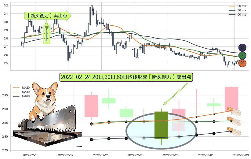 形态多维评估: ⚀ 2022-02-24日显现 20日-30日-60日均线 【断头铡刀】卖出点 看空信号,后市看跌,卖出