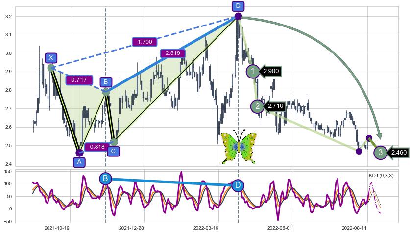 ➣ 已完成【蝴蝶】形态起点X: 2021-09-23, 终点D: 2022-04-06, 共127交易日