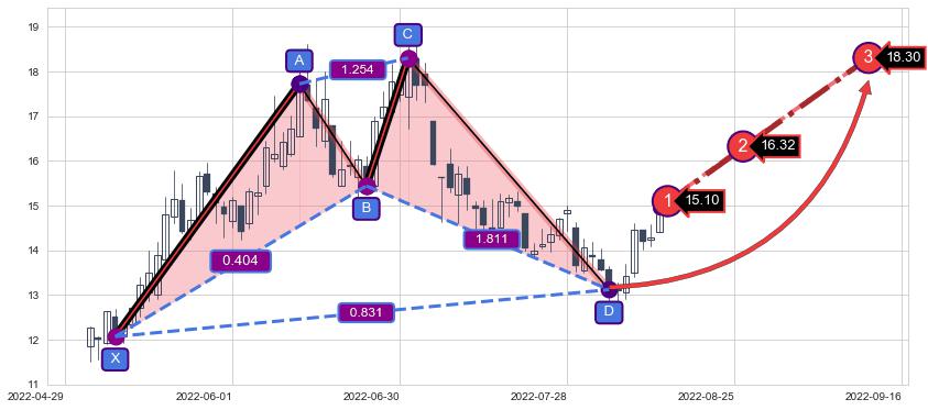 ➢ AI预测: 假定反转如期而至,第❶价格目标位置(2022-08-15, 15.10)