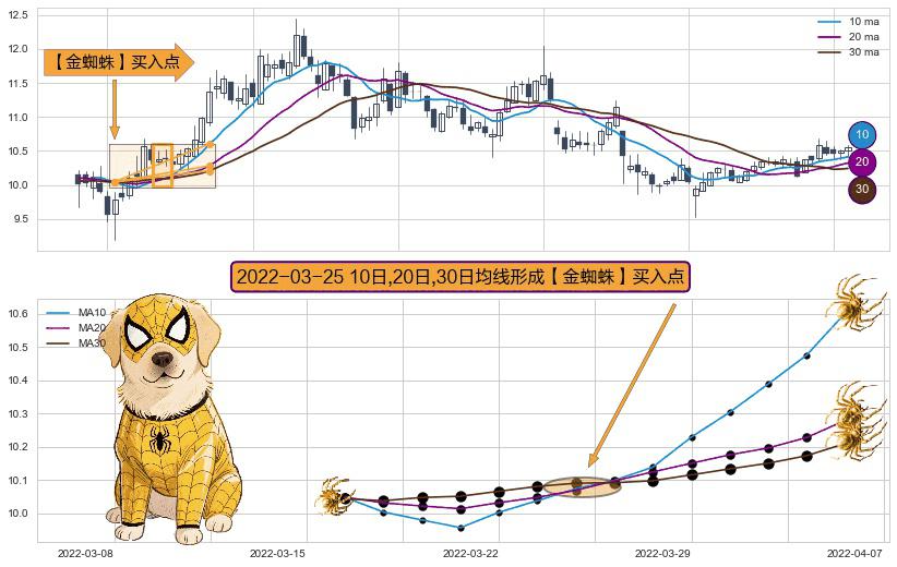 ⚀ 2022-03-25日显现 10日-20日-30日均线 【金蜘蛛】买入点 看多信号,后市看涨,买入