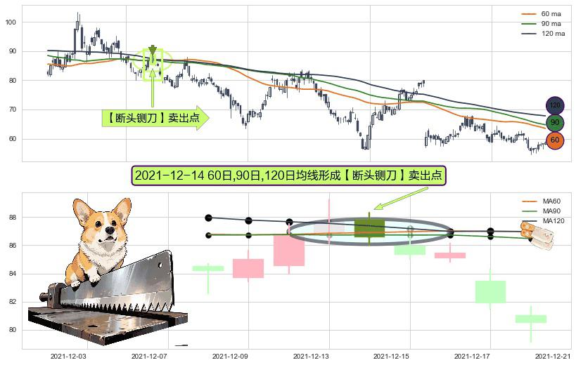 ⚀ 2021-12-14日显现 60日-90日-120日均线 【断头铡刀】卖出点 看空信号,后市看跌,卖出