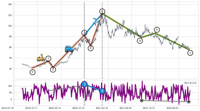 ➣ a,c调整浪MACD, RSI, KDJ走势都【未出现】背离,abc走势延续, 5浪反转概率增强
