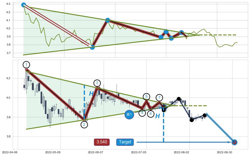 ➢ AI预测: 假定反转启动后, 第❷目标位置(2022-11-04, 3.948)