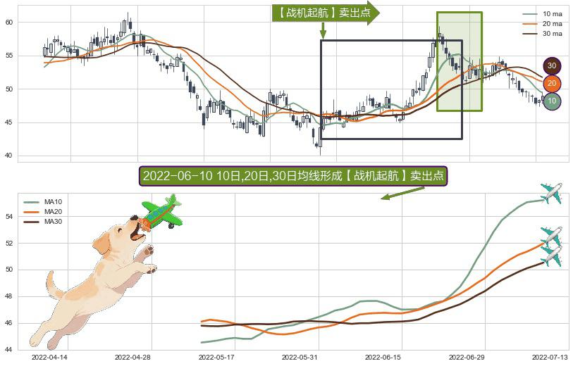 ⚀ 2022-05-11日-2022-07-08日显现 10日-20日-30日均线 【战机起航】卖出点 看空信号,后市看跌,卖出
