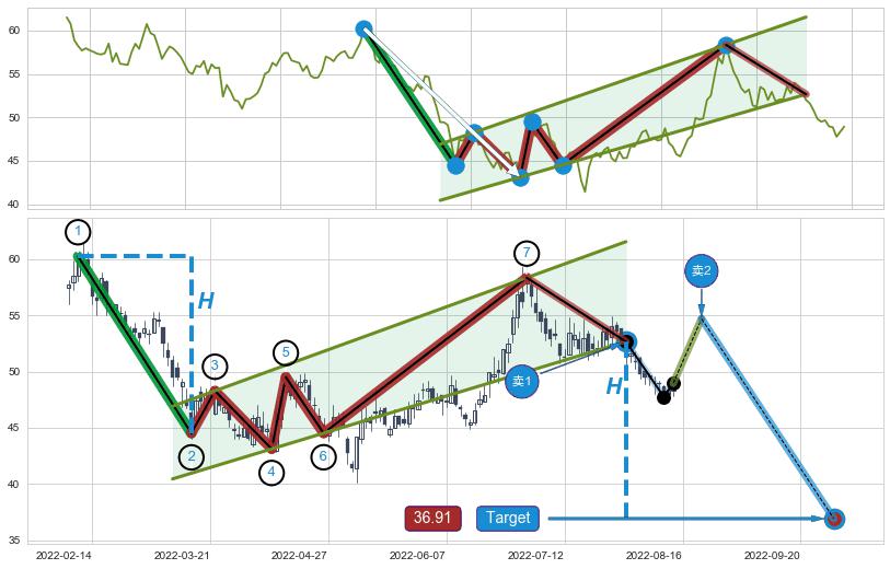 ➢ 2022-06-20到达第❶价格目标位置49.95
