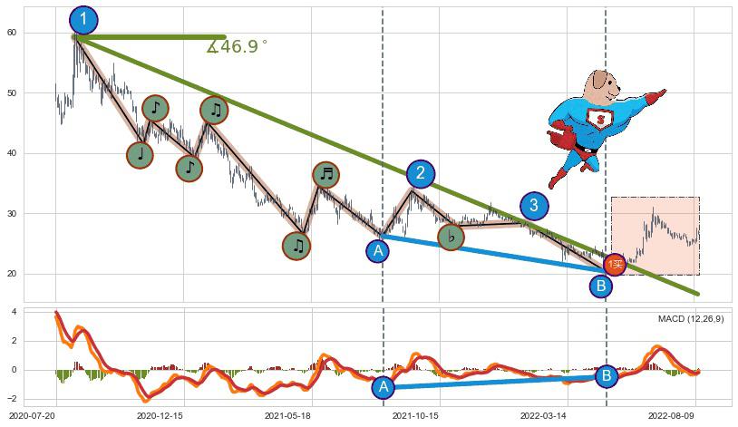 ➣ D点拟合预测价格32.36,距离最后交易收盘价格26.85相差 +20.53%