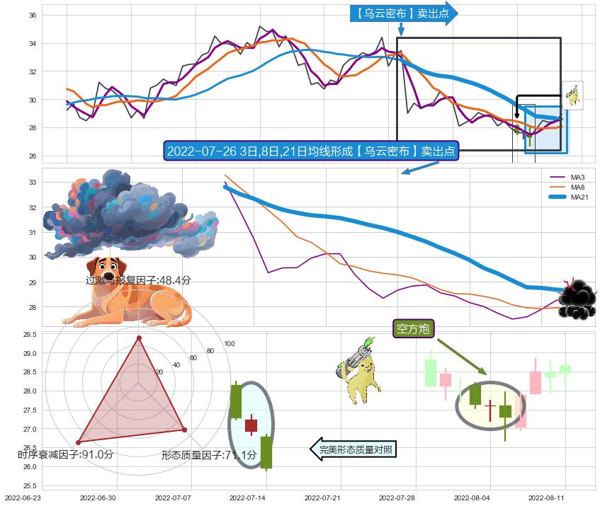 | 11 🅚:【乌云密布】卖出点 ➕ ☯️:缠论买卖点上升缠:猜想2卖趋势延续,蓄力下跌至3卖(大周期趋势均值回复中的小周期趋势跟踪) ☞ 看空信号 ⇥ 【均线】交织【图形】⇥ 综合量化分数: 20 | > |