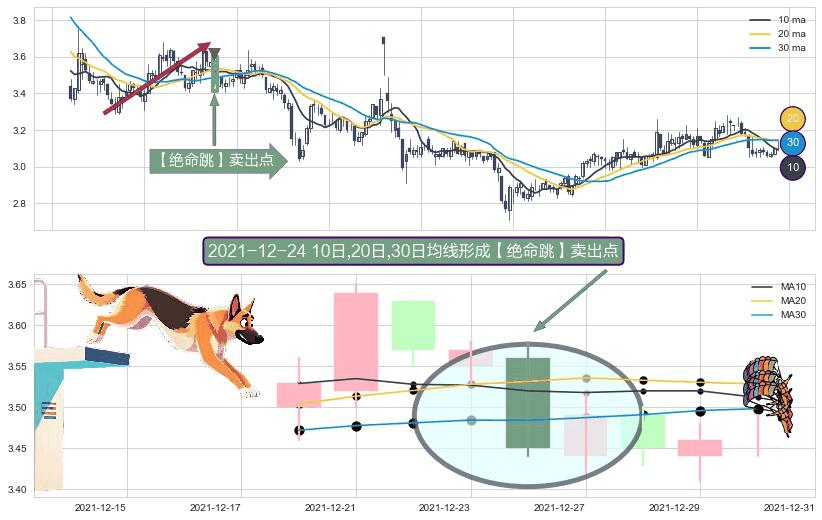 形态多维评估: ⚀ 2021-12-24日显现 10日-20日-30日均线 【绝命跳】卖出点 看空信号,后市看跌,卖出