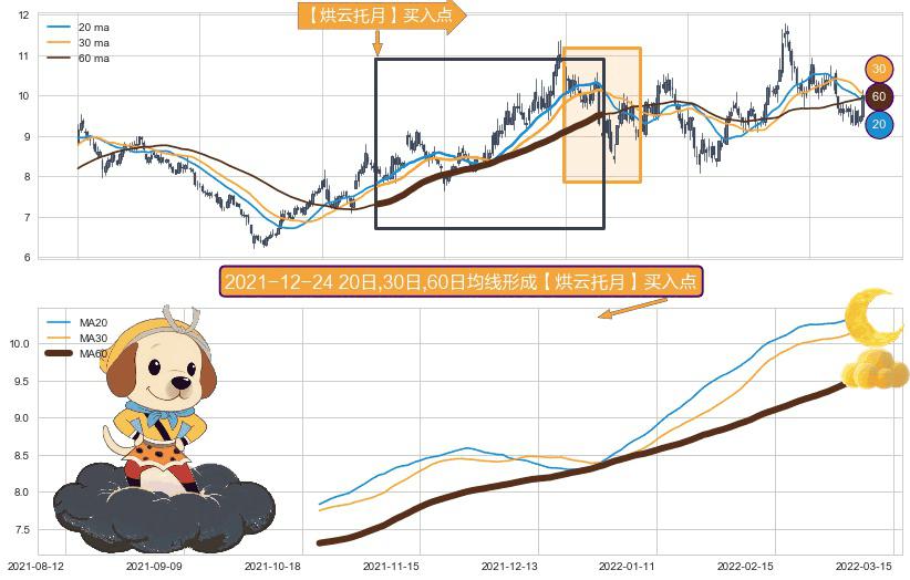 形态多维评估: ⚀ 2021-10-21日-2022-03-08日显现 20日-30日-60日均线 【烘云托月】买入点 看多信号,后市看涨,买入