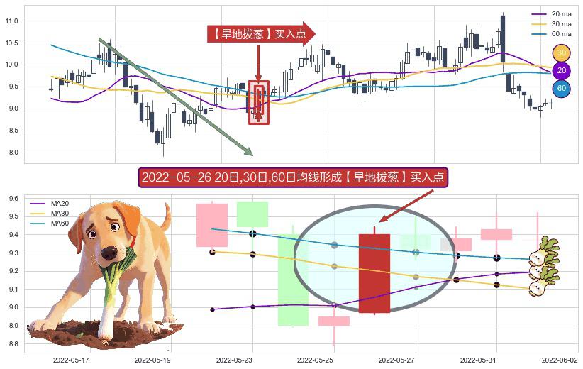⚀ 2022-05-26日显现 20日-30日-60日均线 【旱地拔葱】买入点 看多信号,后市看涨,买入