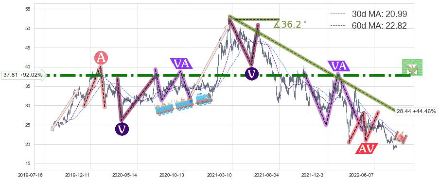 ♘ 阻力价格位37.81,可信任强度99.00%,距离最后交易2022-08-12形成的收盘价格19.69相差 +92.02%