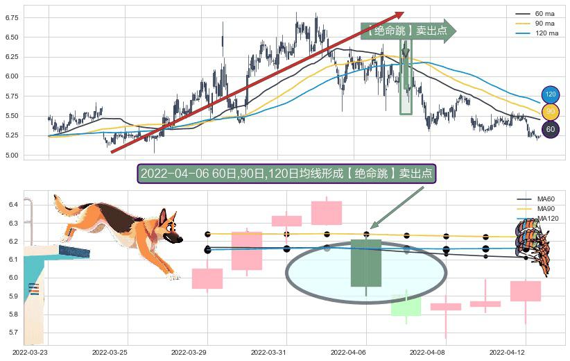 ⚀ 2022-04-06日显现 60日-90日-120日均线 【绝命跳】卖出点 看空信号,后市看跌,卖出