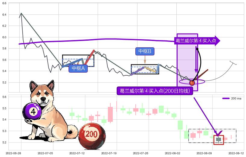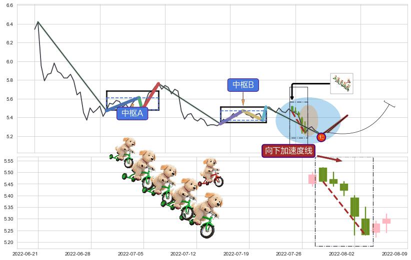 ➣ 【中枢B】:2022-06-28-2022-07-18,中枢由4笔构成,共15交易日, ZG=5.47, ZD=5.37