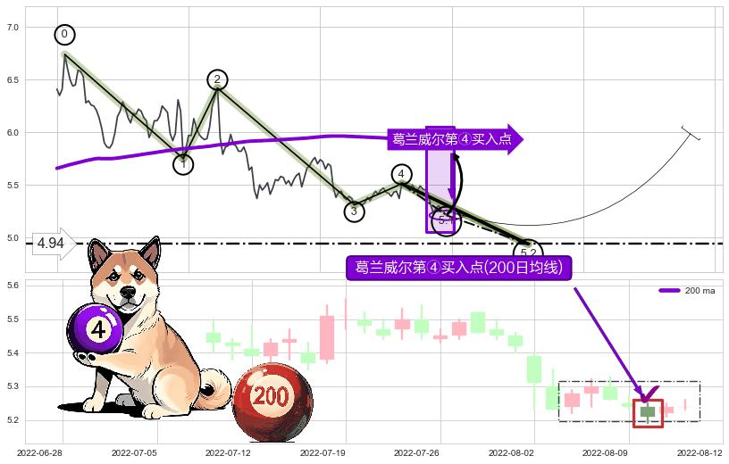 ➣ D点拟合预测价格4.82,距离最后交易收盘价格5.24相差 -8.05%