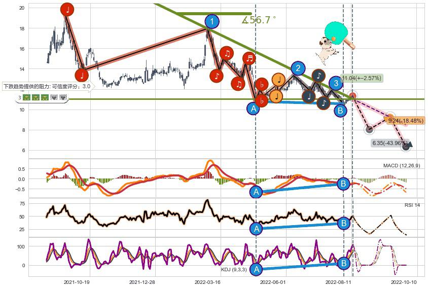 ➢ AI预测: 假定反转如期而至,第❸价格目标位置(2022-09-07, 13.33)