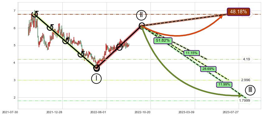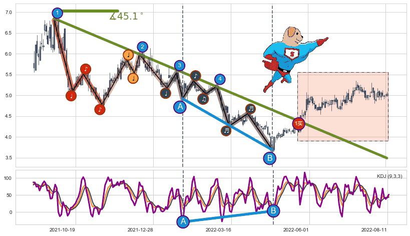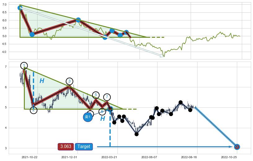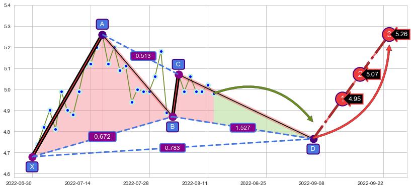 ➣ AI预测: 假定反转启动后, 第❶目标位置(2022-09-13, 4.95)