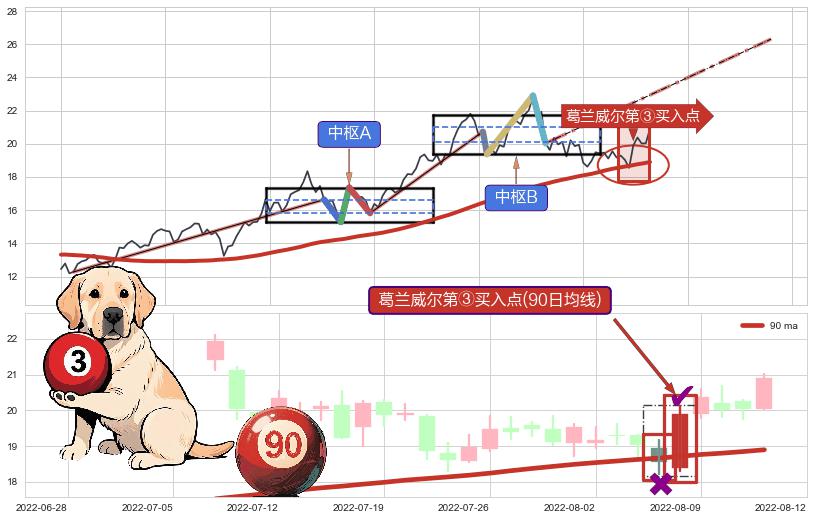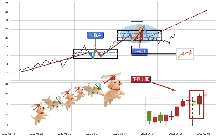 ➣ 【中枢B】:2022-06-17-2022-07-08,中枢由4笔构成,共16交易日, ZG=20.73, ZD=20.03