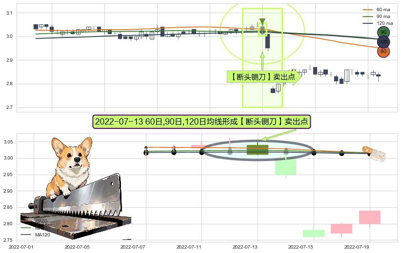 形态多维评估: ⚀ 2022-07-13日显现 60日-90日-120日均线 【断头铡刀】卖出点 看空信号,后市看跌,卖出