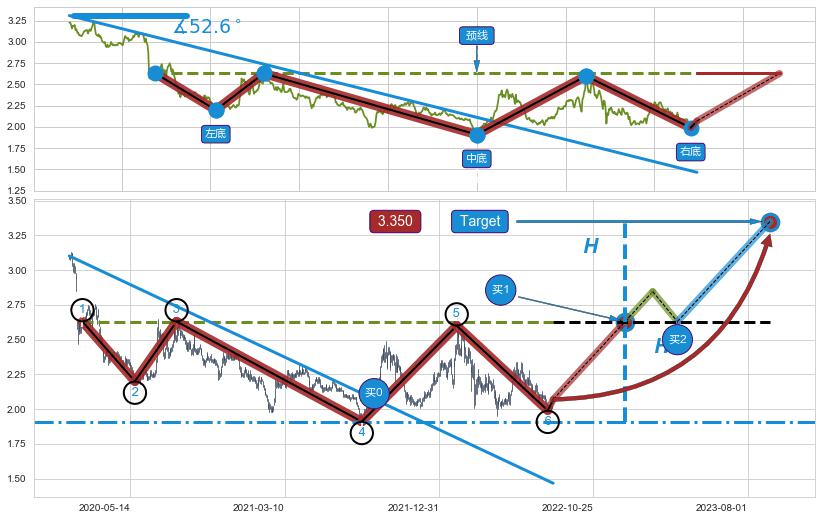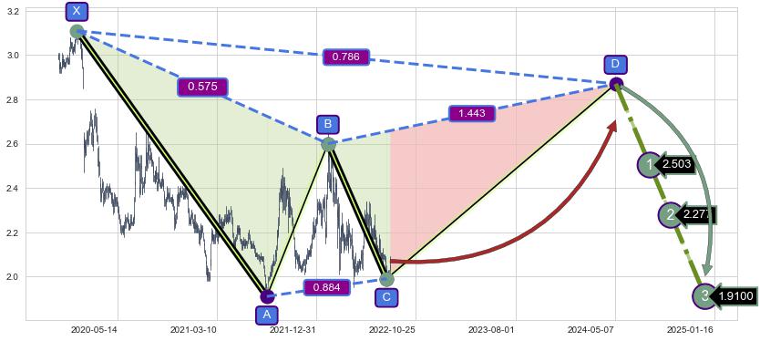 ➣ D点拟合预测价格2.870,距离最后交易收盘价格2.070相差 +38.66%